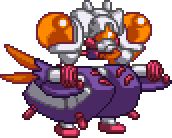 A Bipedal Medarot in its base form, Beelzebubbler uses dangerous Sacrifice parts; its arms destroy themselves in order to do very high damage to a target at range. Its head allows it to resurrect broken parts, allowing it to reuse its arms, but as it only has two charges, it requires a healing-focused ally in order to attack more than four times. The devil-type Medarot Belzelga has the exact same parts load-out, and may have served as inspiration for Beelzebubbler.