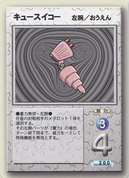 | current | 12:29, 1 March 2016 | 450 × 620 (183 KB) | Kimbles (talk | contribs) | {{imagesource|Scanned by Pointingandlaughing on the Rising Beetle forum.}} {{cardscan-fairuse|Medarot Card Game}} |