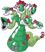 It is the leader Medarot used by Orochi in the 9 Vs. 9 battle. The player obtains all of its parts after the fight.