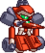 As a Medarot based on a race car, Landracer is all about speed - both of its arms are Booster parts, significantly boosting its attack power if it moves before attacking. The drawback is that its head, a Hammer part, is its only means of attack, but with 7 charges before it runs dry, it can do a good deal of damage before it's left helpless.