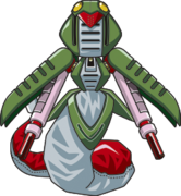He is one of the medarot being tricked by the RoboRobo Gang in Odoro Marsh, the player can return to meet him later and challenge him to a robattle for his parts alongside two more multi-leg medarot.