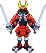 Samurai is a bipedal Medarot notable in all of its game appearances for its high attack power. Its beam swords have been handled in various different ways depending on the game.